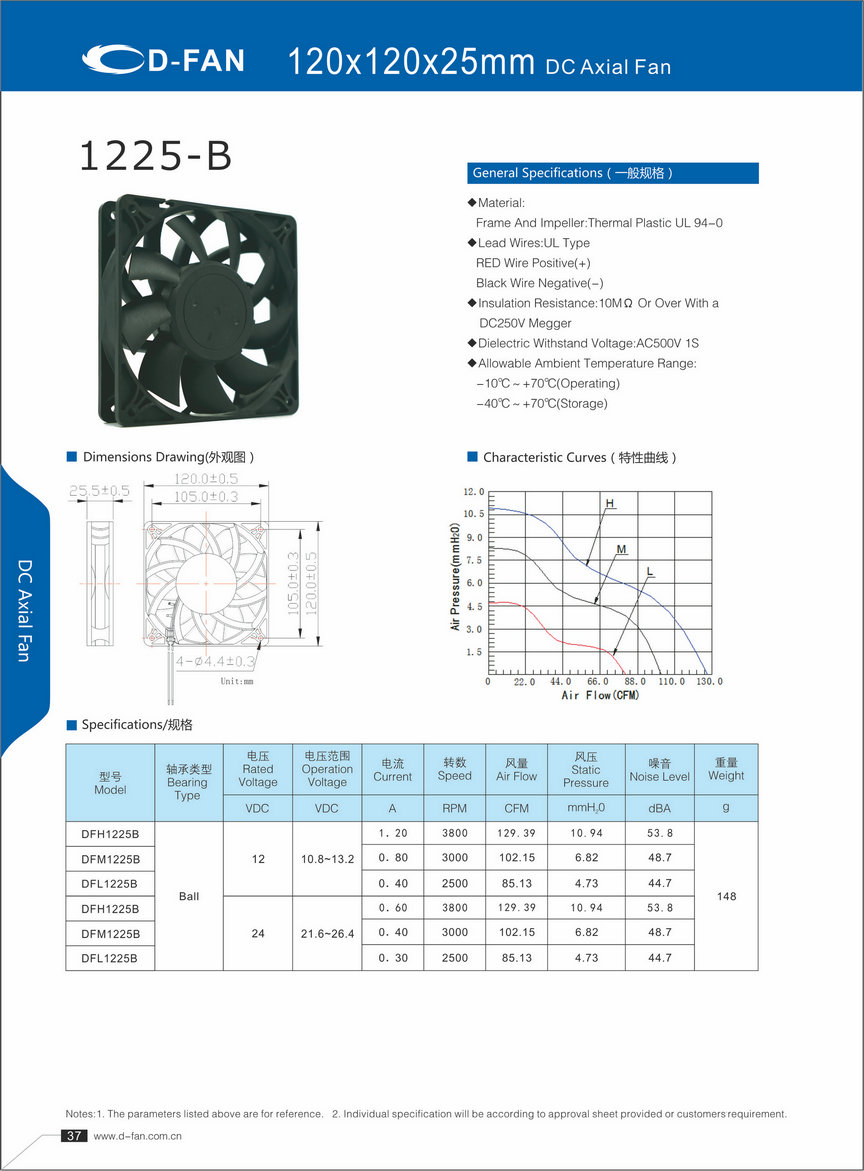 材料: 框架和葉輪:熱塑UL 94-0 引線.UL類型 紅色導(dǎo)線正極(+) 黑線負(fù)極(-) 絕緣電阻:10MΩ或以上,帶DC250V高阻表 介電耐壓:AC500V 1S 允許環(huán)境溫度范圍: -10℃-+70℃(運行) -40℃-+70℃(儲存)